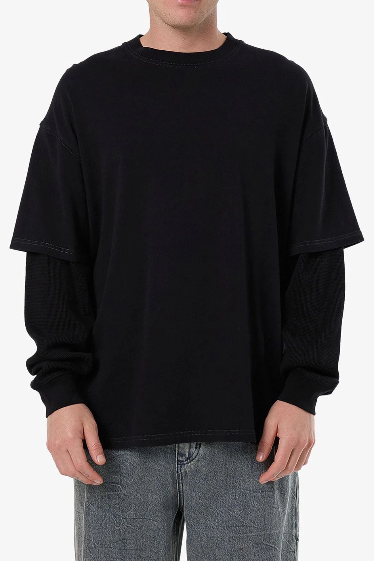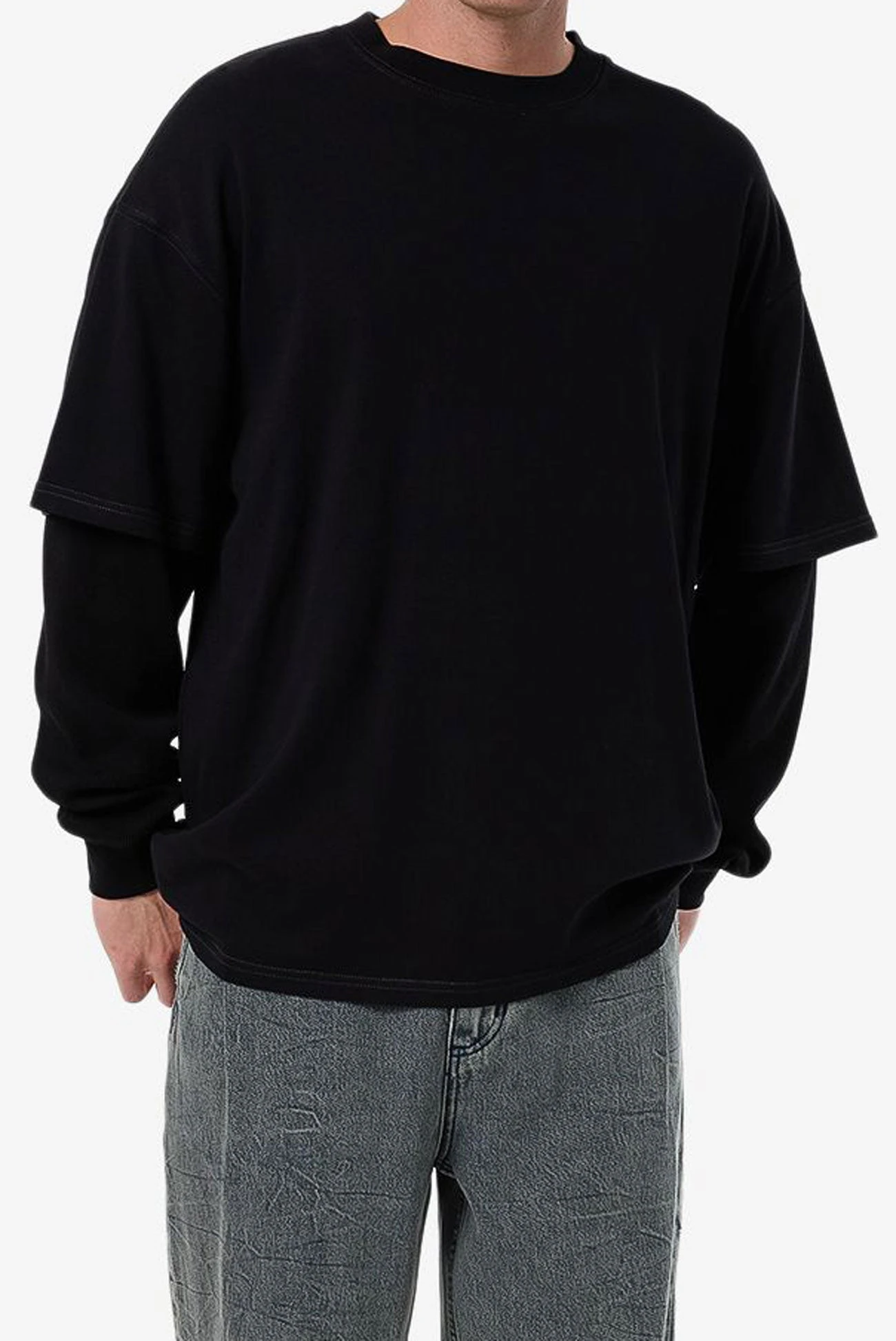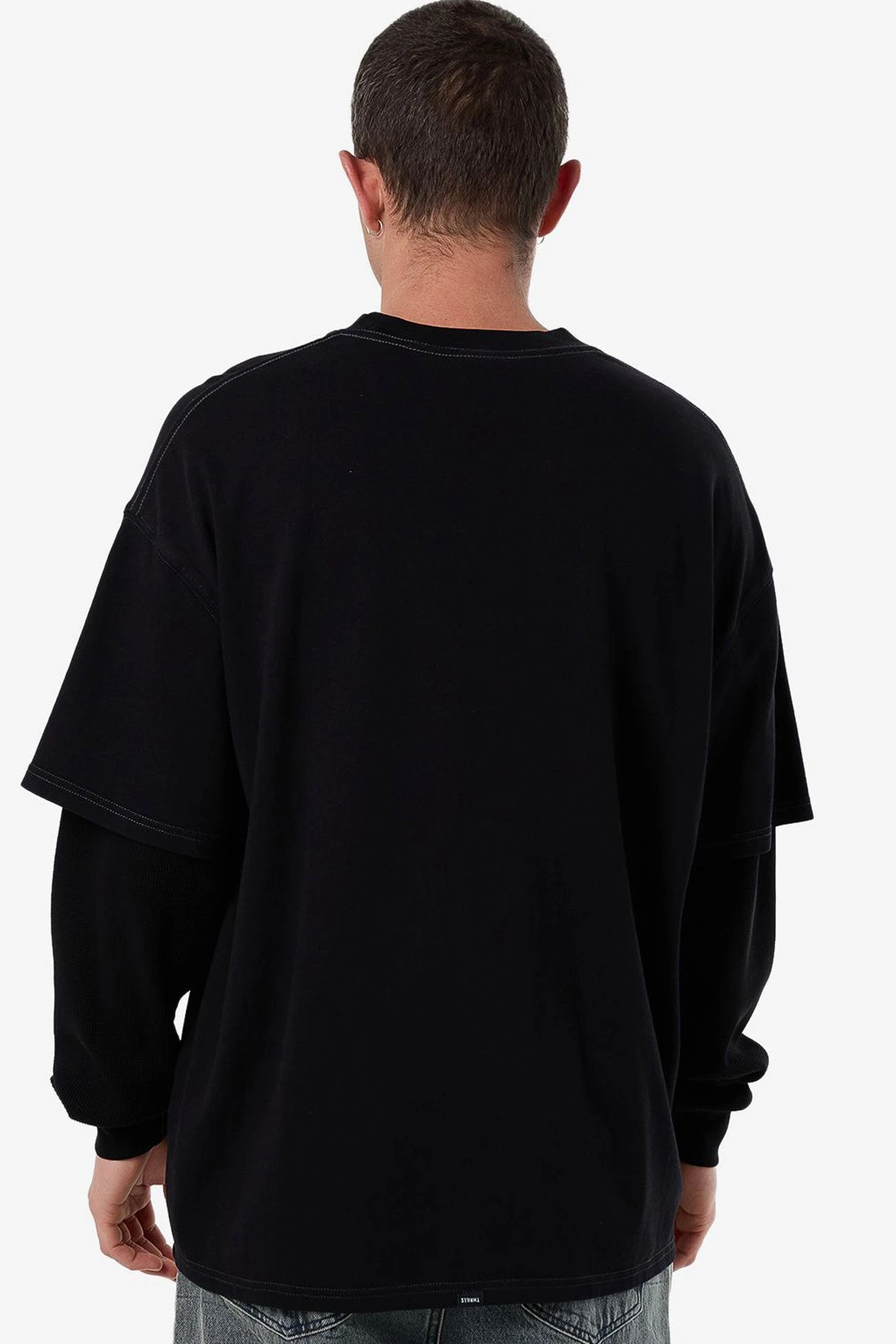 The Arts & Industrial Layer Box Fit Oversize Long Sleeve Tee in black offers a relaxed, comfortable fit with its oversized design.