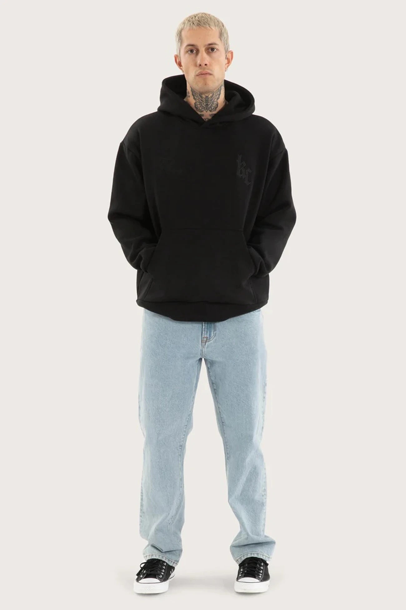 Introducing the Chained Relaxed Hoodie in Jet Black, a relaxed-fit heavyweight fleece hoodie in a cotton-poly blend featuring a standout off-shoulder design with a relaxed sleeve and regular neck ribbing. Perfect for layering!