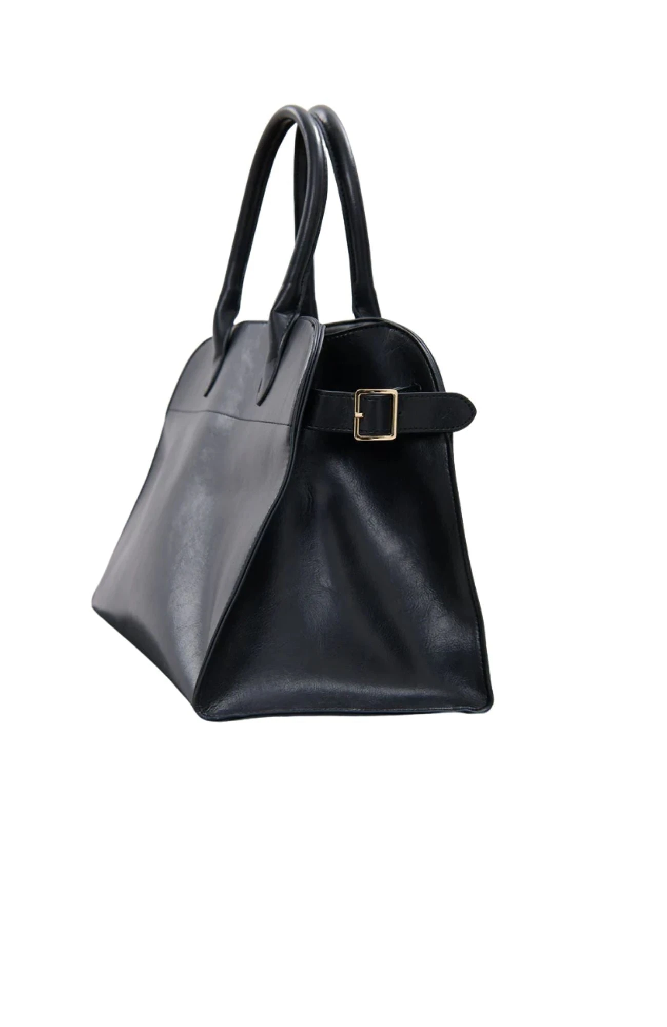 The Clemence Tote Bag is a sleek vegan leather that features a fully lined interior and sturdy top handles for easy carrying.