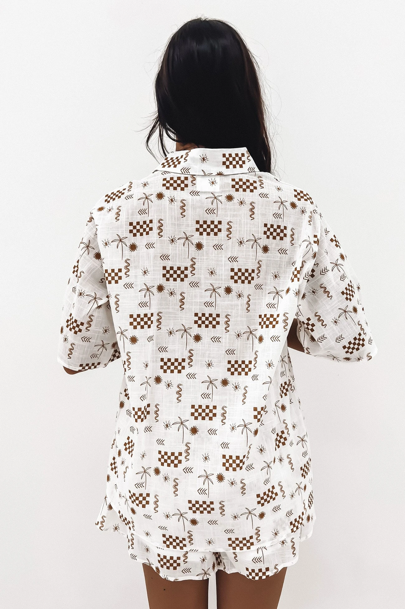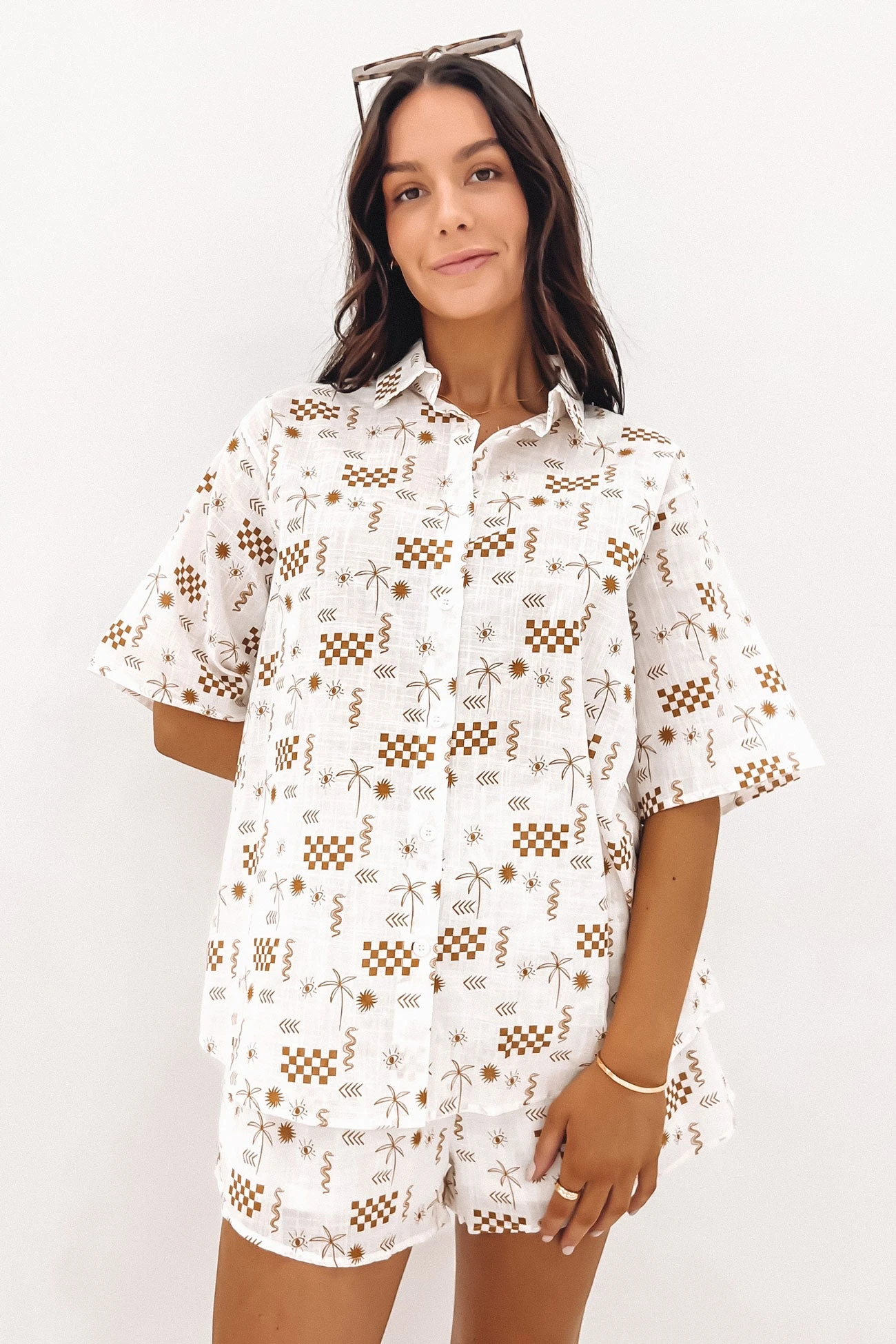 This stylish Corfu Set is the perfect combination of comfort and sophistication. The button-up shirt boasts a collar and short sleeves, while the shorts feature an elasticated waistband for a comfortable fit. Elevate your look with this perfect summer set!