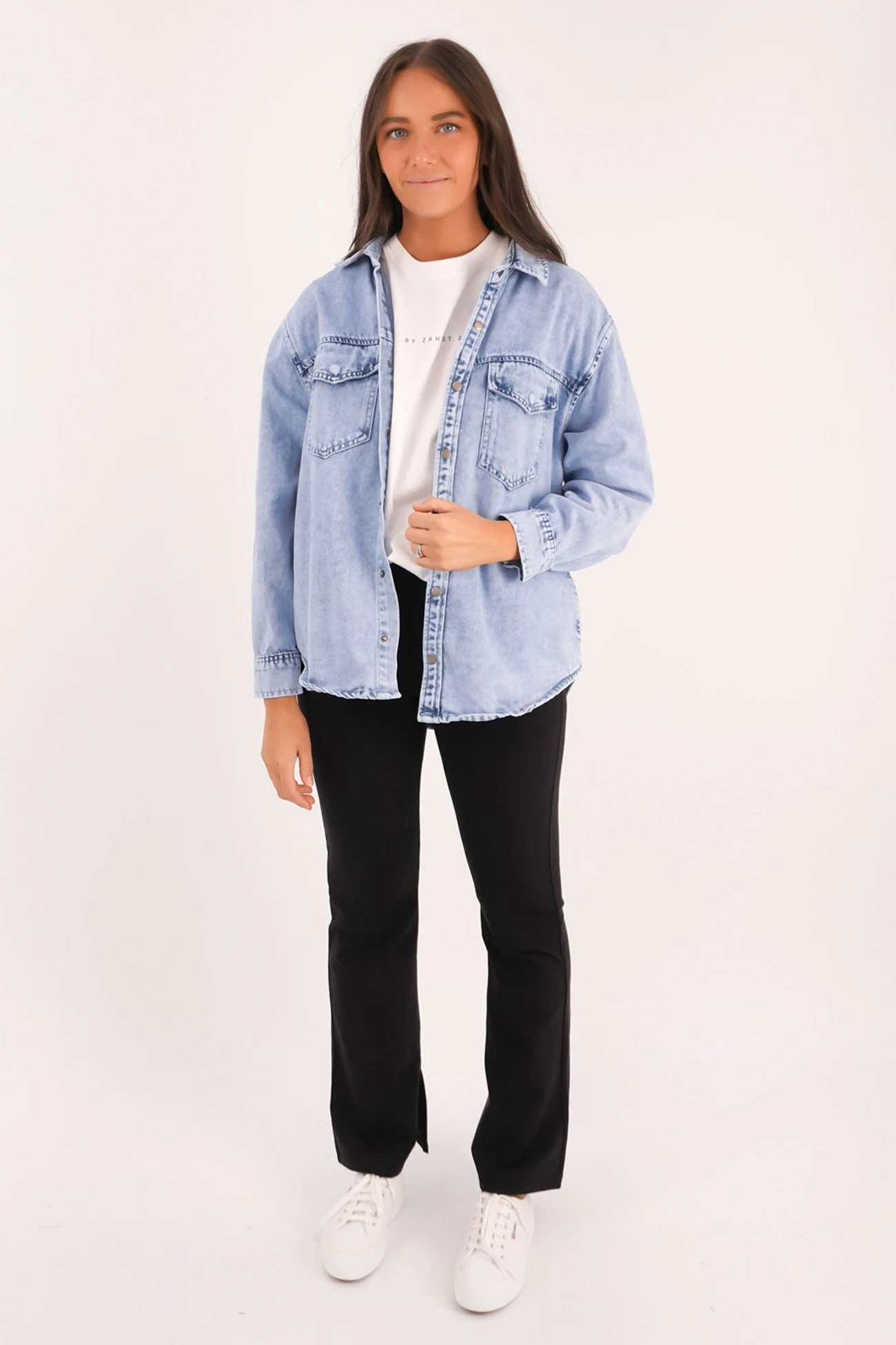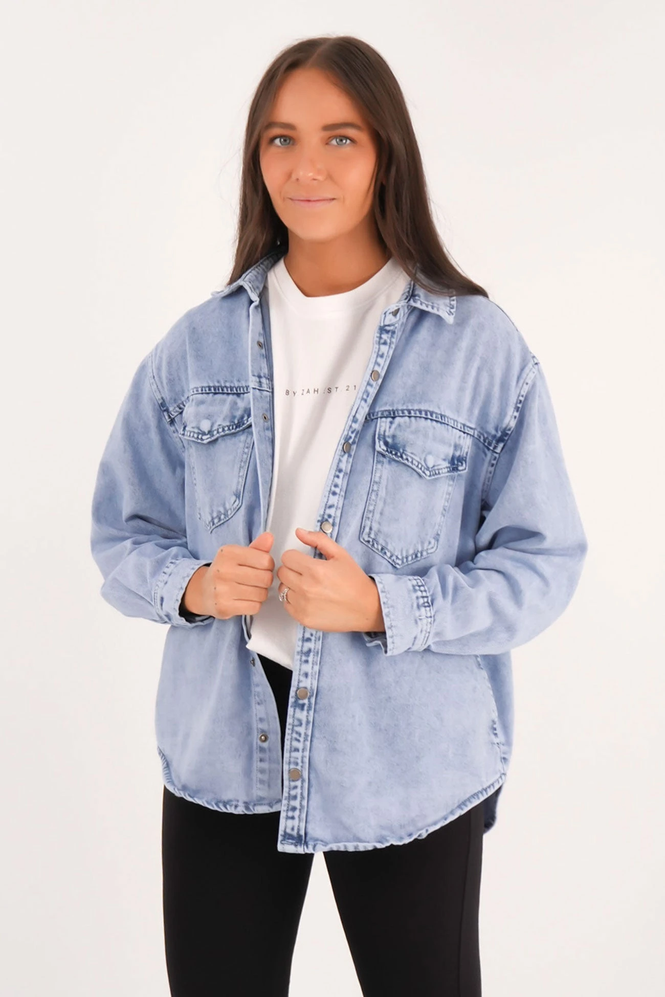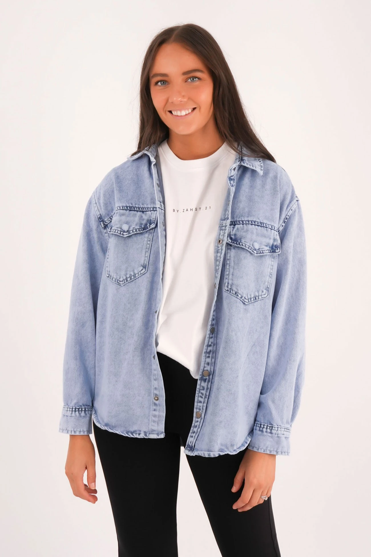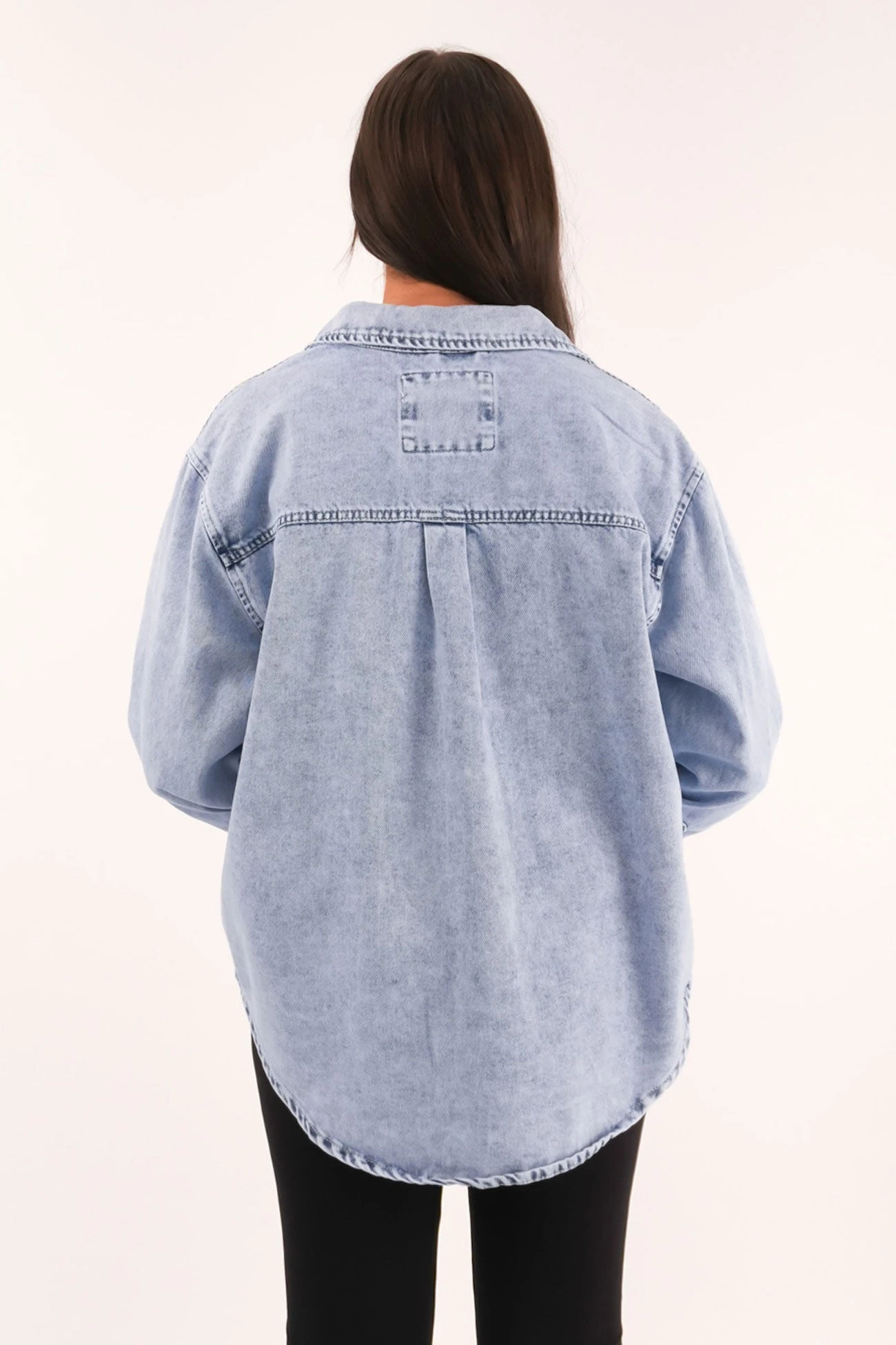 The Daisy Over Shirt Light Blue is an effortlessly cool layering piece, perfect for any season. Designed with a relaxed fit, this lightweight shirt features a classic wash and button-up features. Whether worn open over a tank or buttoned up for a polished touch, it’s the ultimate blend of casual and chic.