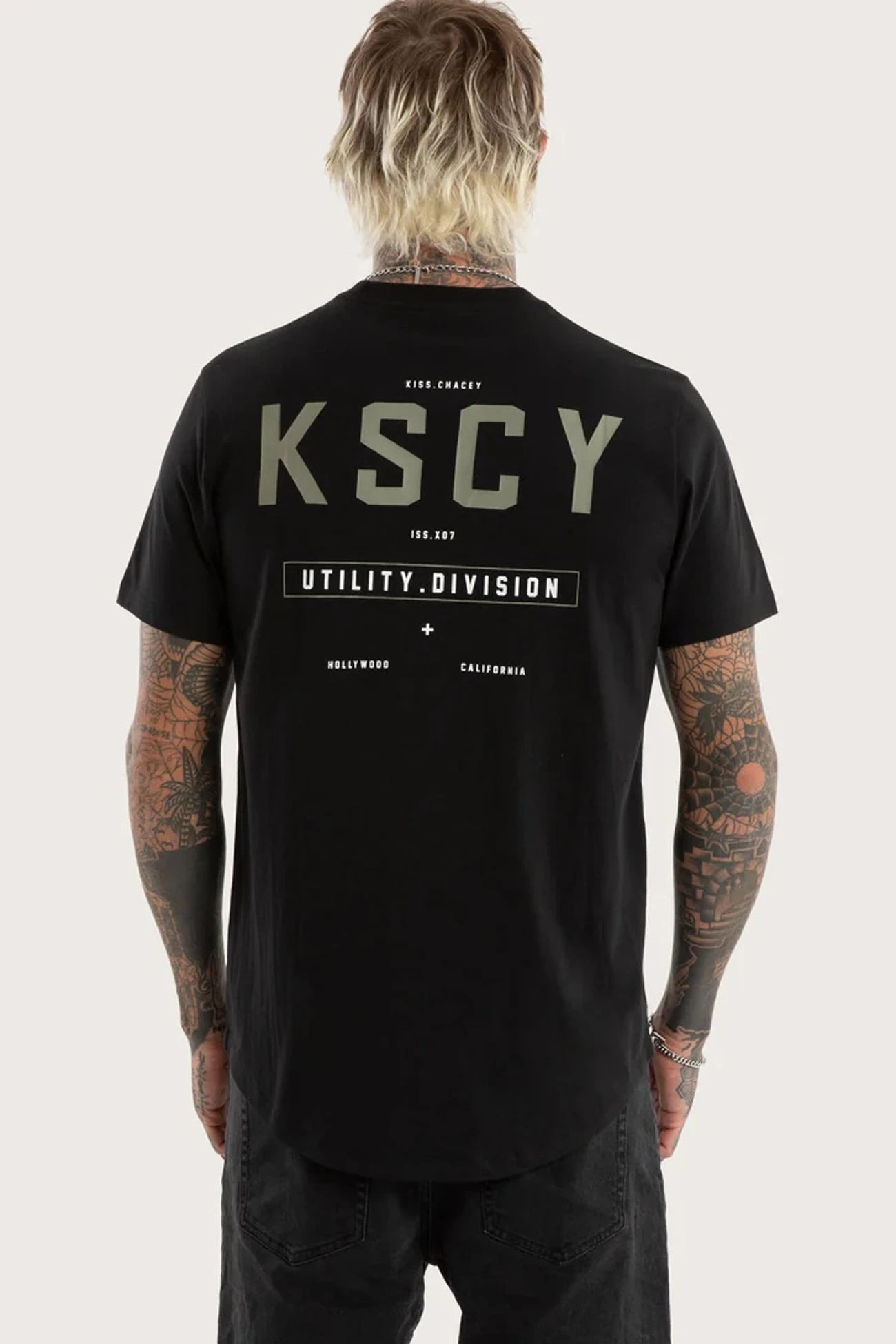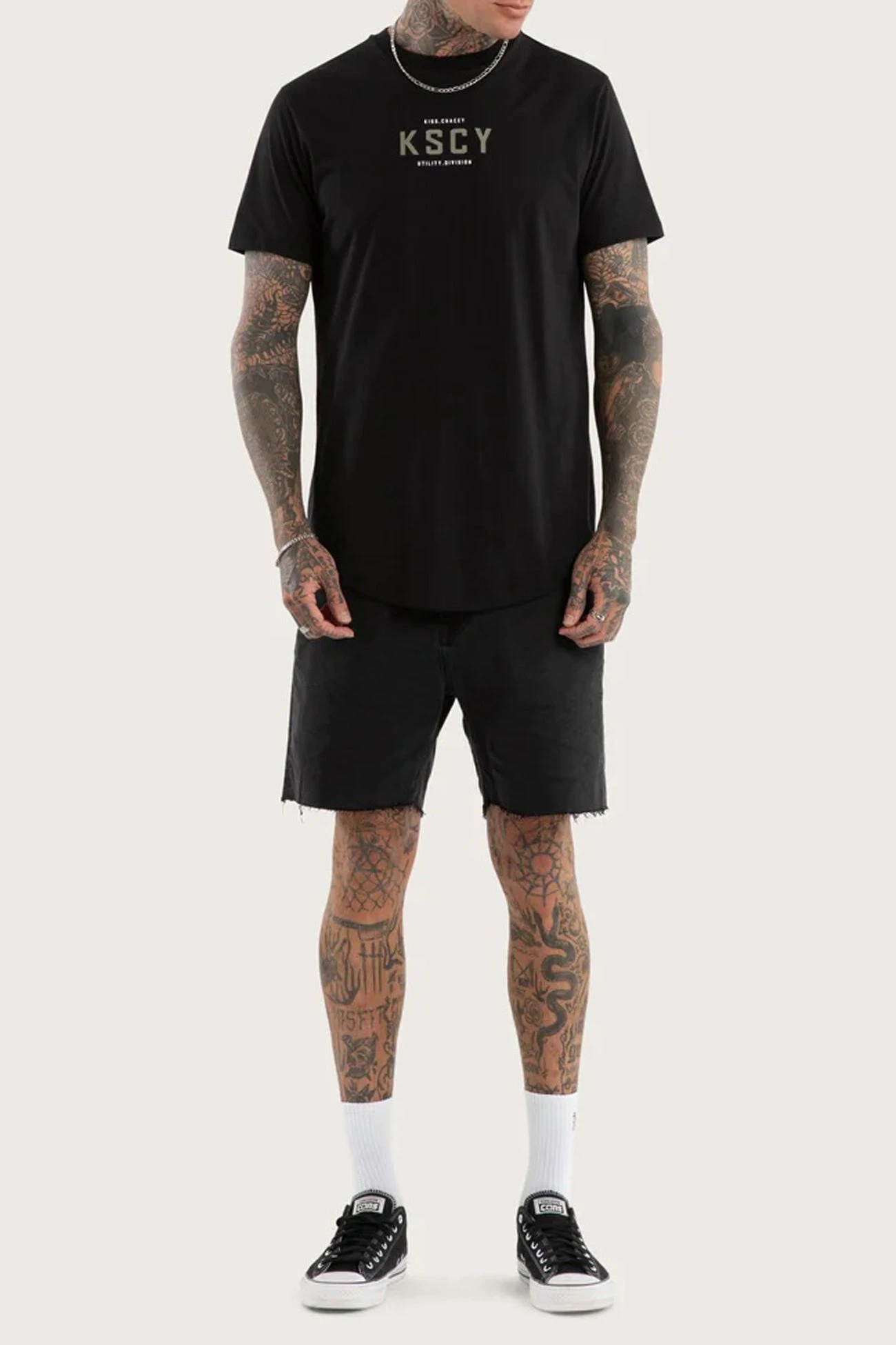 The Division Dual Curved Tee in Jet Black is a standout piece from KSCY’s latest collection. With a slim fit, long length, and curved hem, it delivers a heritage shape.