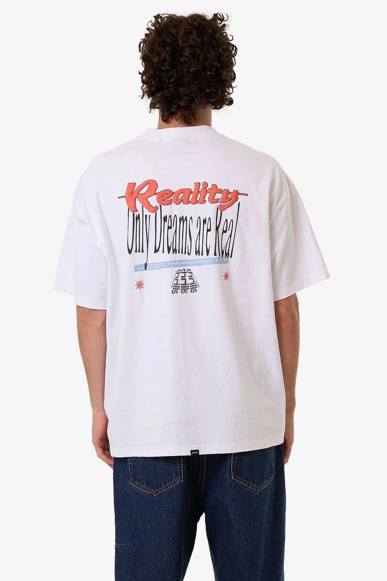 Unwind in style with the Dream Reality Box Fit Oversize Tee White. Made with the best quality cotton jersey, this men’s tee with a boxy, oversized fit is made for breathable, premium comfort. Featuring a surreal front graphic and bold, eye-catching typography on the back, it effortlessly merges art and style to match your authentic, adventurous spirit.