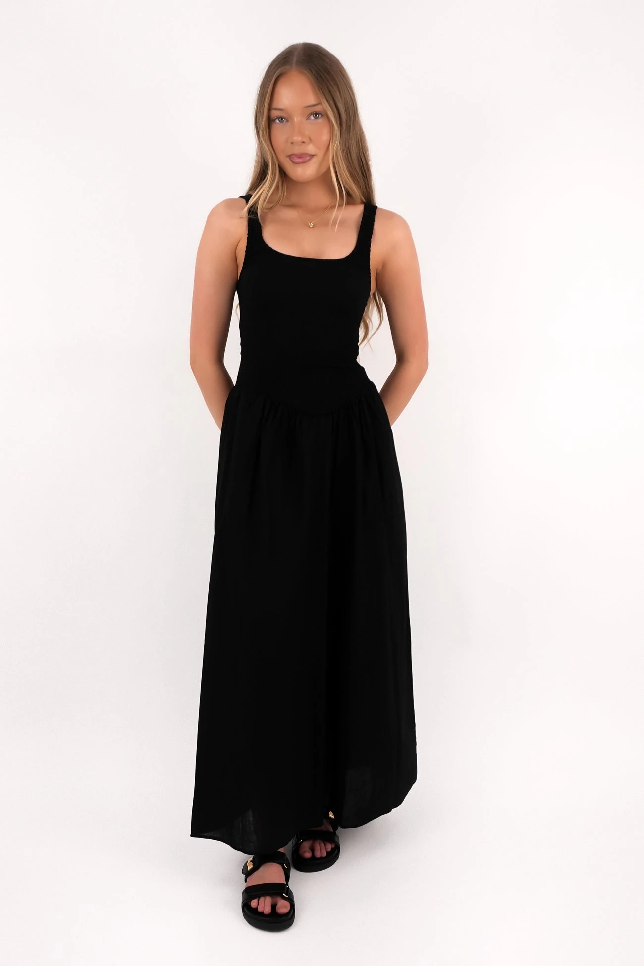 The Essential Maxi Dress is an easy, everyday staple with a relaxed yet flattering fit. Made from 100% cotton, it features a classic scoop neckline, shirred bodice, and side pockets for added comfort and ease. Perfect for warm days or laid-back weekends.