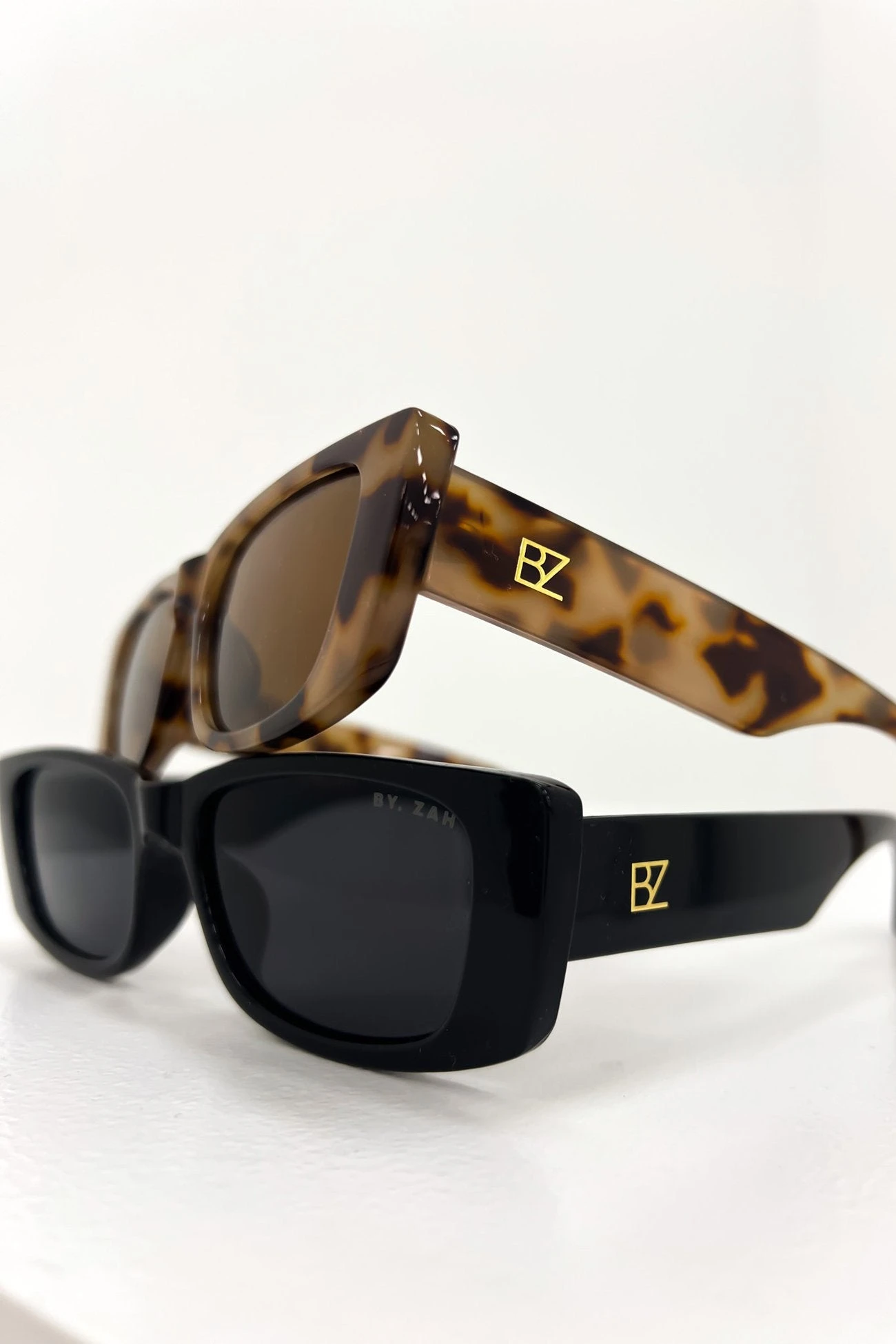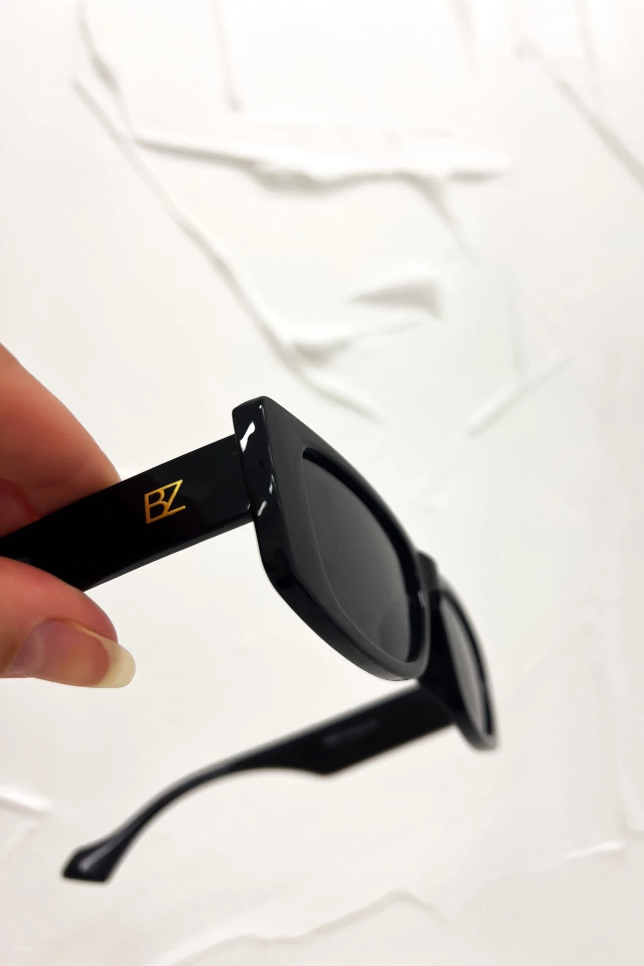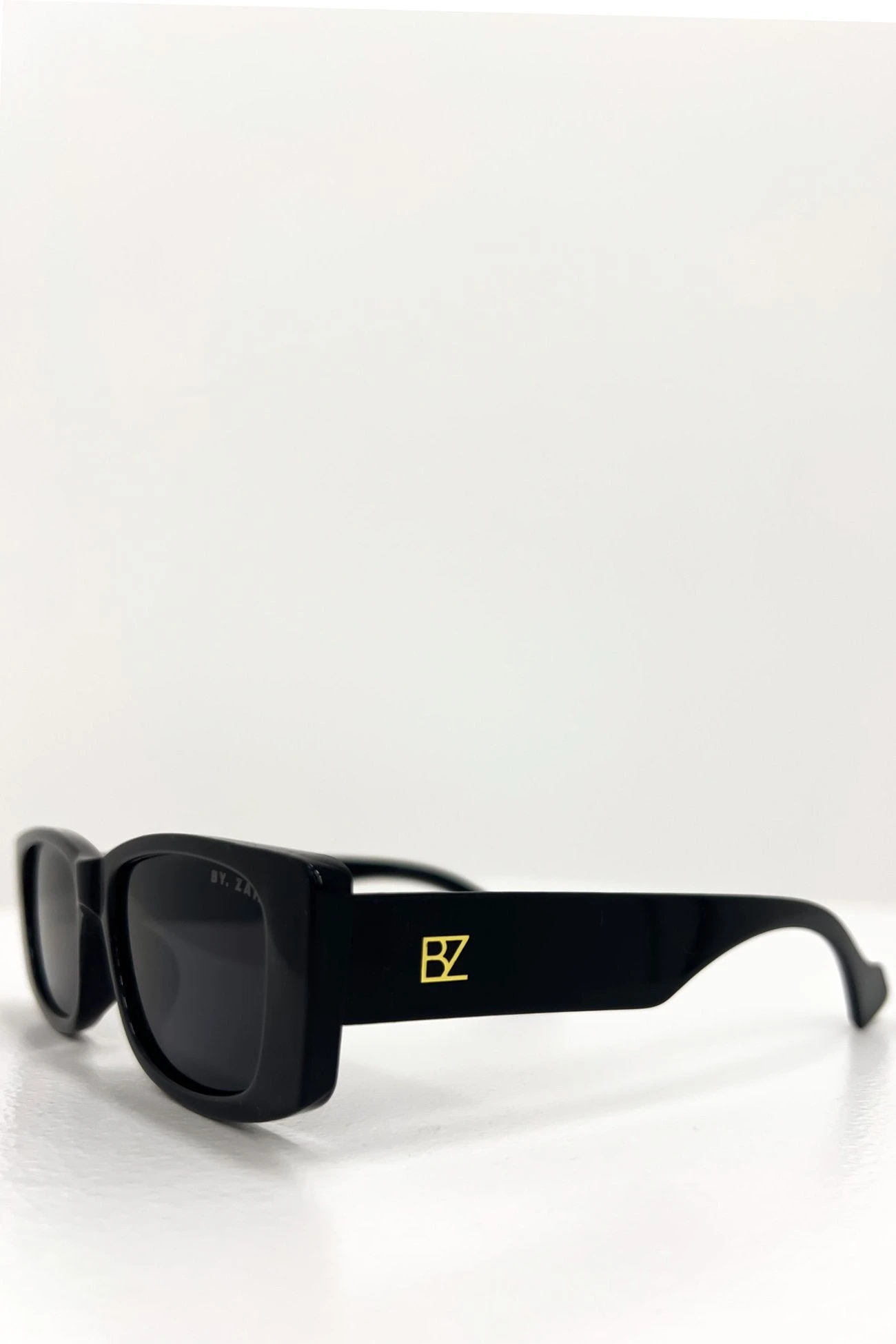 Effortlessly chic and endlessly versatile, BY.ZAH’s Eva Sunglasses in black are the ultimate accessory for every season. Featuring a bold, rectangular frame and high-quality lenses, these sunglasses combine timeless design with modern functionality. The glossy black finish and subtle gold detailing add a touch of luxury, making them perfect for elevating any outfit.