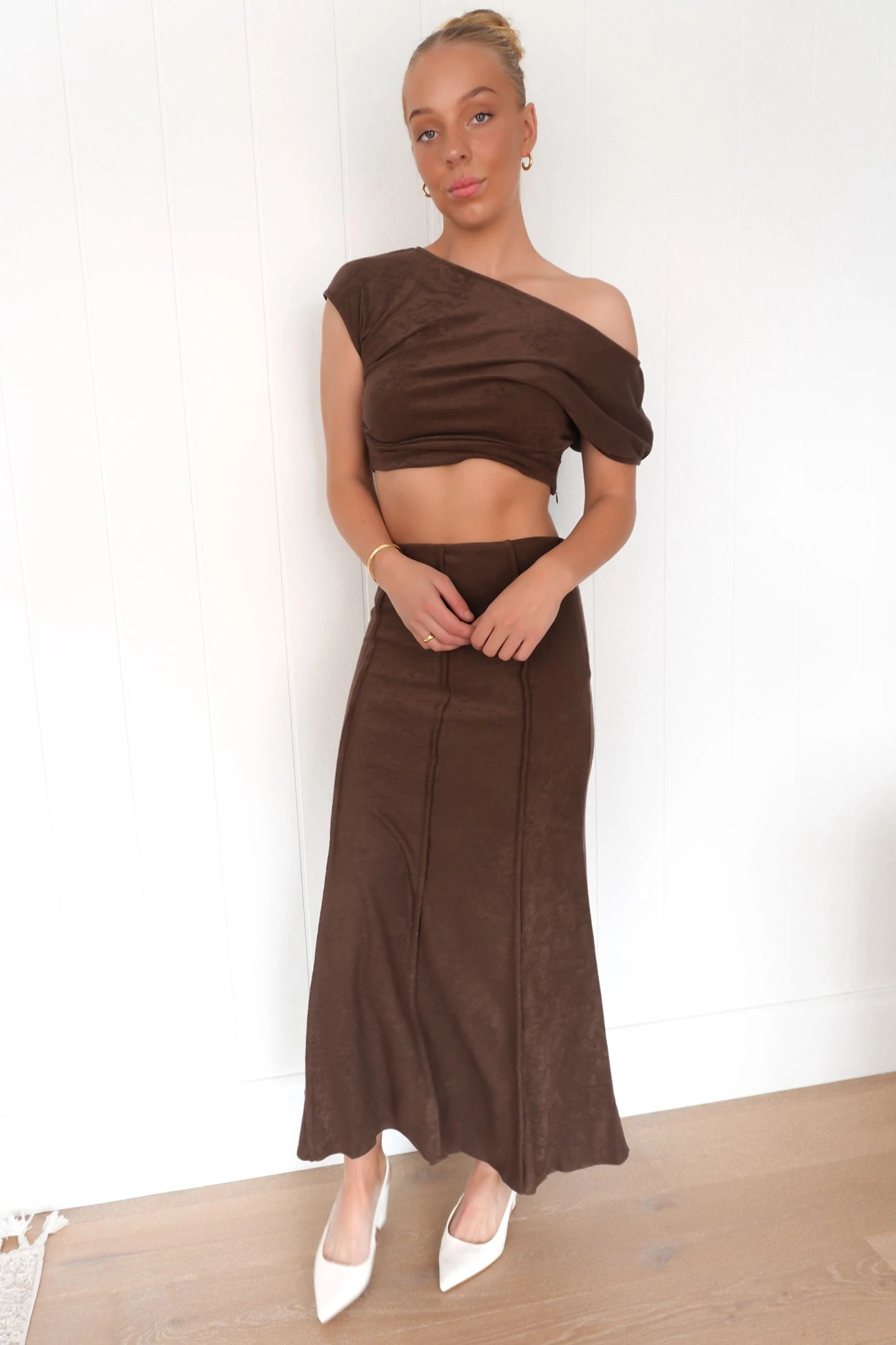 The Gwen Set in Chocolate offers a stylish and versatile addition to your wardrobe.