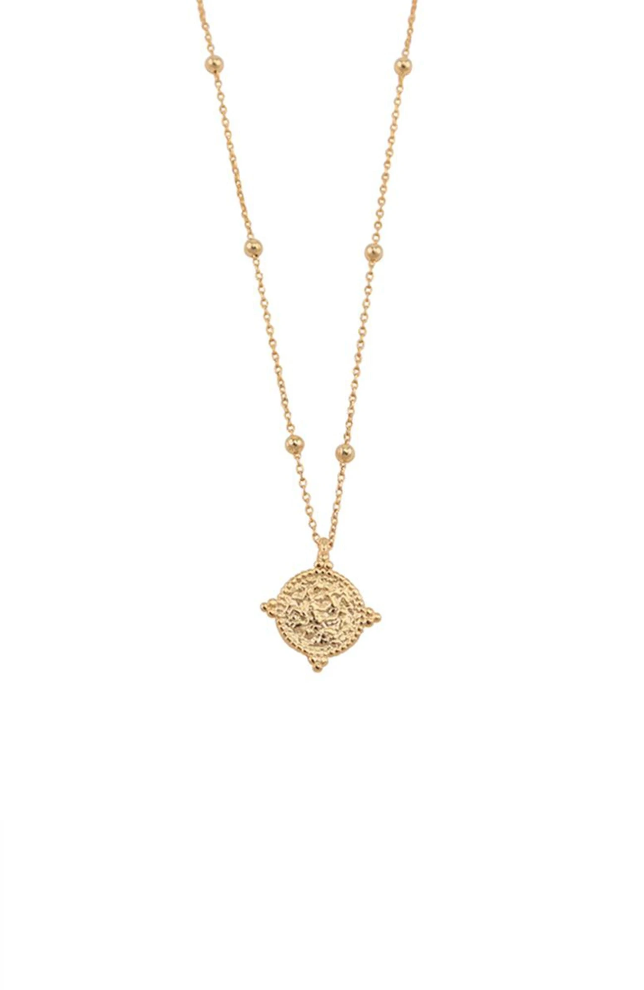 The Jodie Necklace is a small disc style necklace with ball detail on the chain. A dainty style to wear on it own or layer to create a boho look.