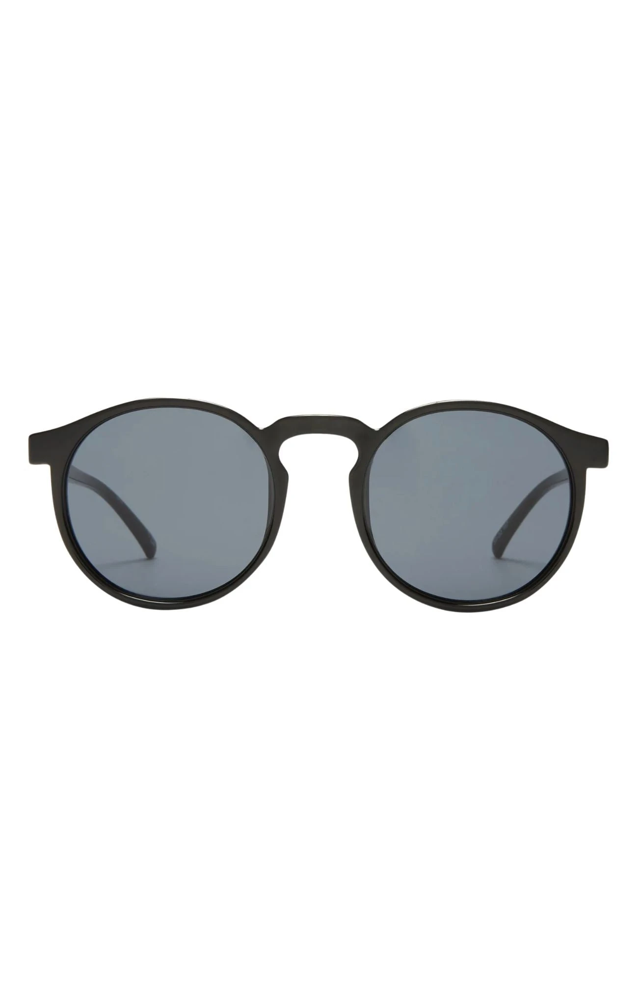 Defined by its round lenses and keyhole nose bridge, this refreshed classic offers a modern take on a mid-century silhouette, featuring iconic Le Specs flagstripe metal hardware.