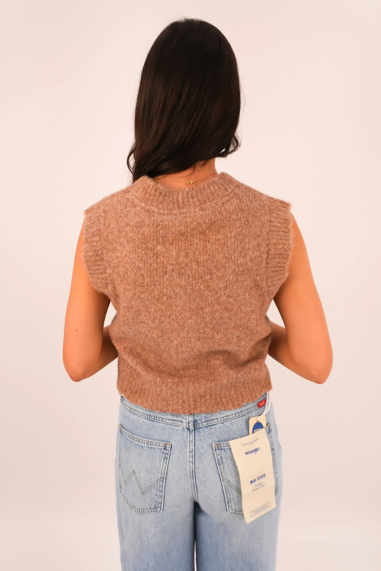 The Leah Knit Vest in Oat offers a soft, comfortable knit perfect for layering. Its neutral oat colour adds warmth and versatility to your wardrobe, making it an easy piece to style for any season.