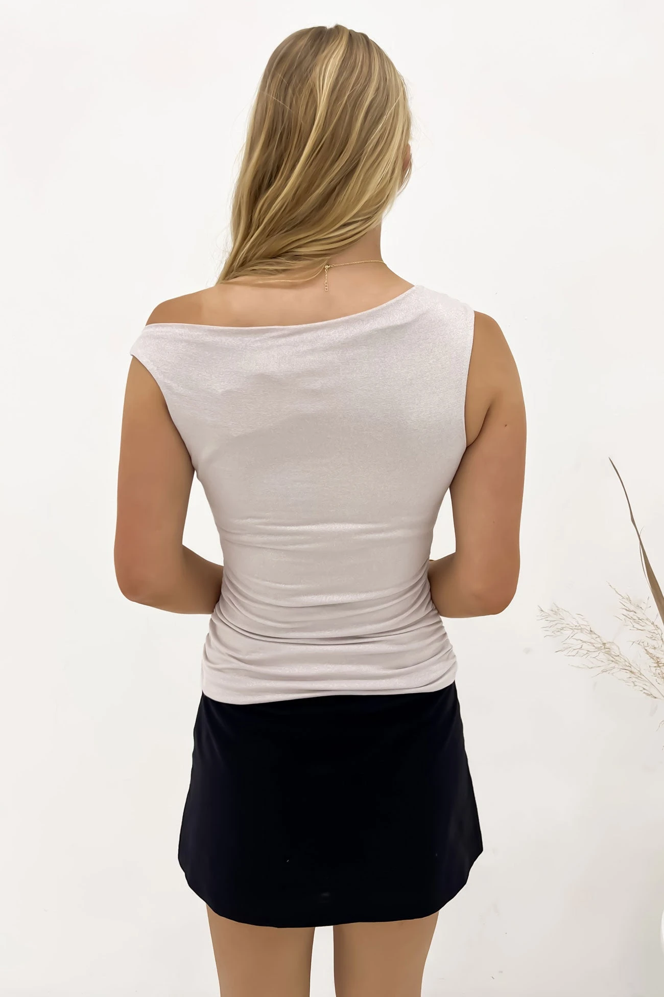 The Lottie Top Natural is the ultimate blend of simplicity and style. With its versatile neutral tone and slight shimmer fabric, its perfect for a night out!