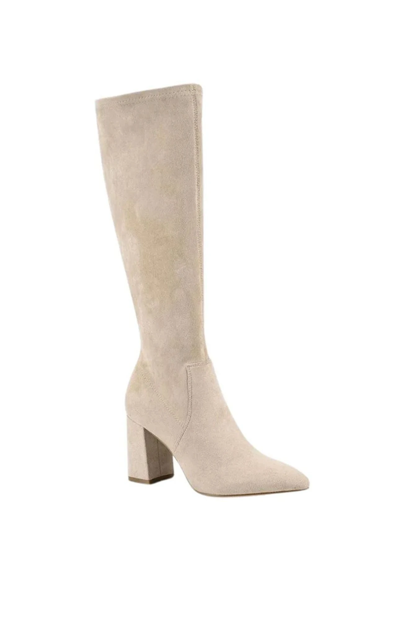 Verali’s ‘Manny’ Tall Boots perfect for transitioning from day to night. Made with a pointed toe and angular block heel, they complement both mini skirts and knit dresses. Elevate your style with these versatile and trendy boots.