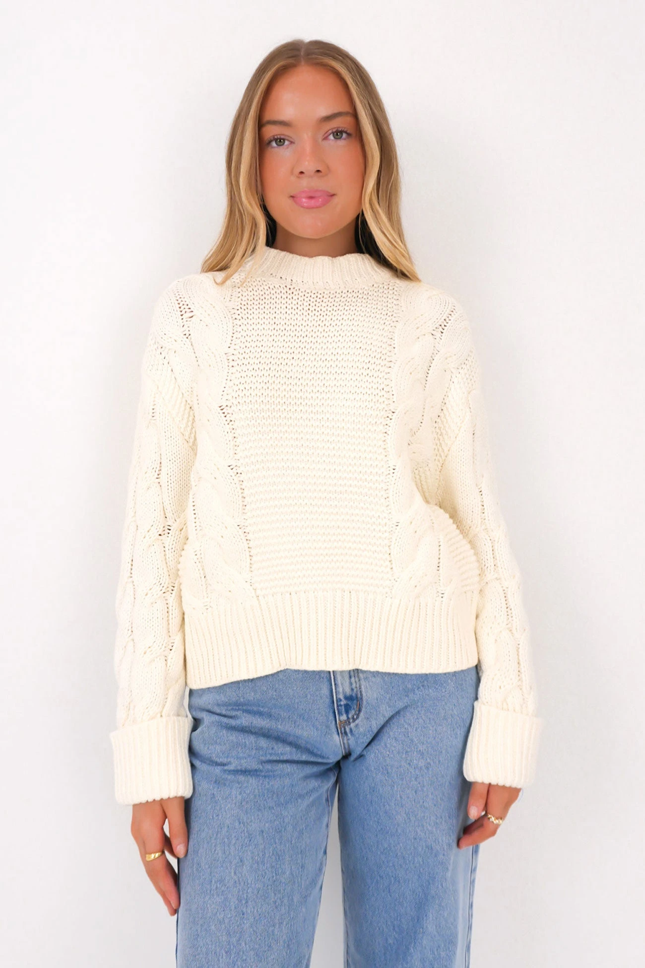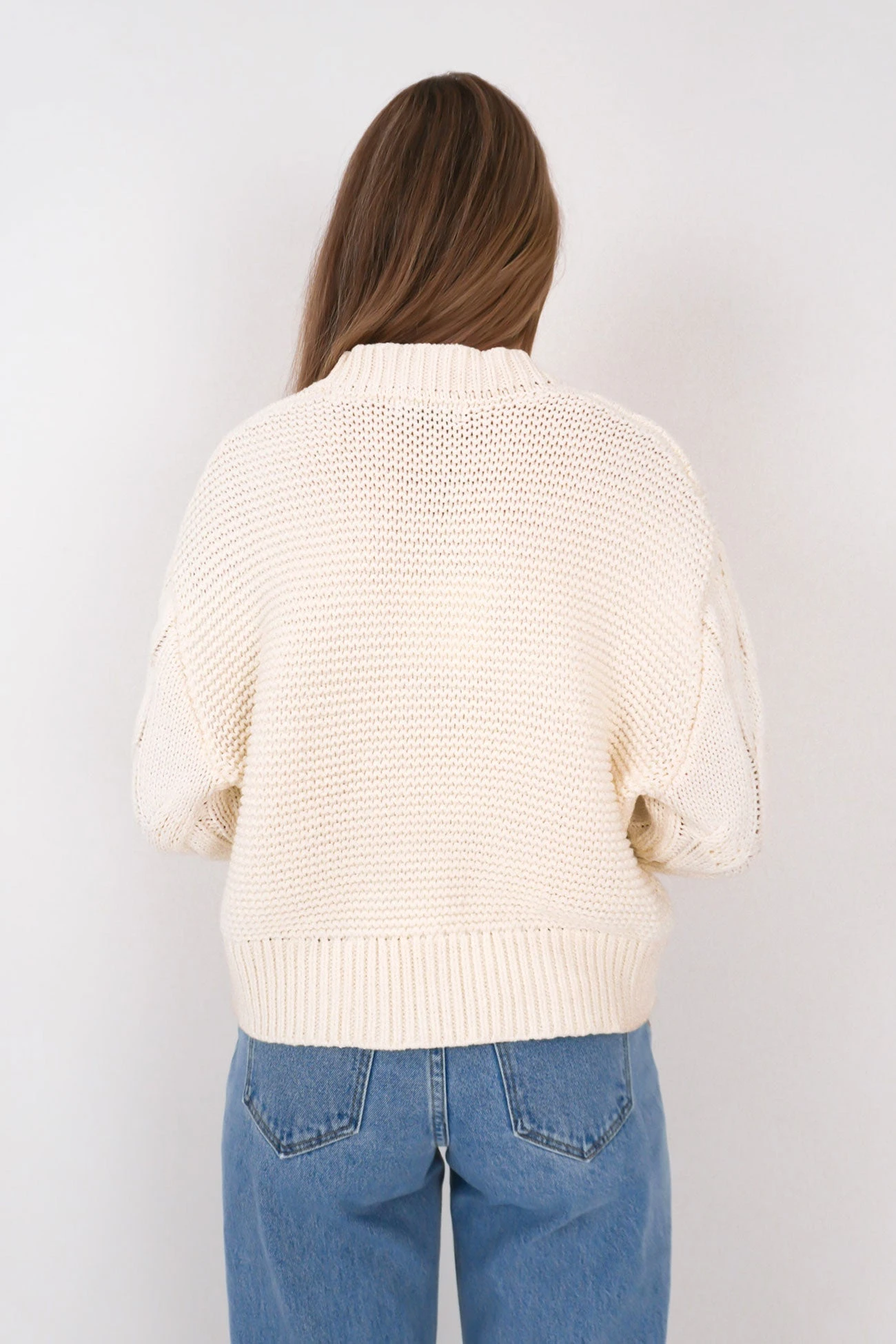 The Mavis Knit Cream is a cozy and stylish essential. With its knit fabrication and cream hue, it pairs effortlessly with anything in your wardrobe.