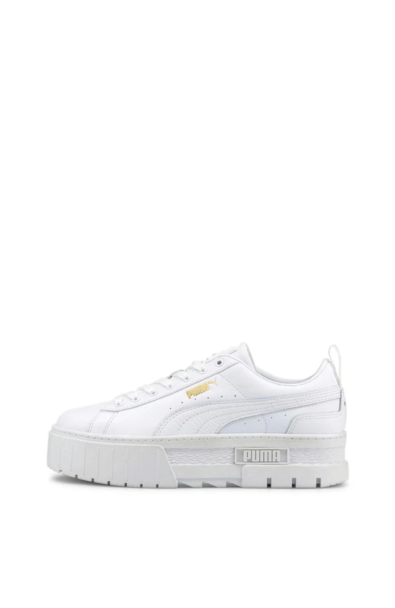 Get in the edgy streetstyle groove with the Mayze Classic, featuring an explosive combination of urban glamour and athletic chic. A chunky stacked sole and a genuine leather upper give a hard-core vibe to these street-savvy sneakers, while embossed metallic detailing lends a hint of glam. Thoughtful details like a glossy eyelet finish and a webbing heel loop for easy on and off add the finishing touches to this on-point design.
