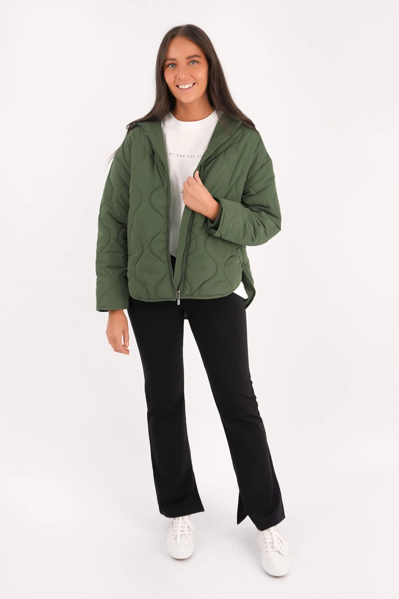 Quilted for warmth and style, the Mellow Quilted Jacket Khaki is your go-to for the season. Featuring a front zip opening, a cosy knit collar and side pockets for added practicality, its the perfect jacket to keep you comfortable and stylish on cooler days.