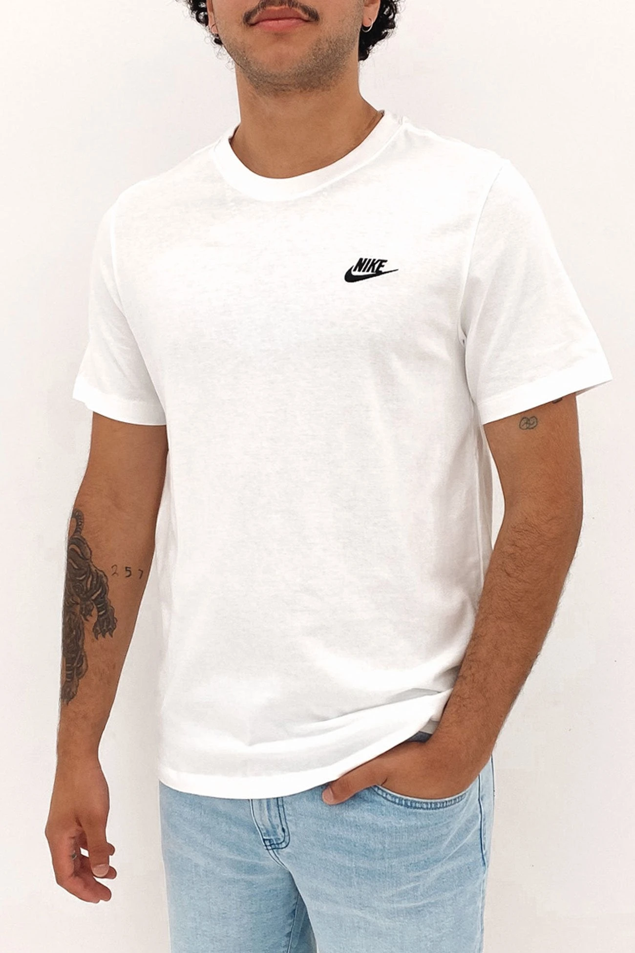The Nike Sportswear Club T-Shirt is made with Nikes everyday cotton fabric and a classic fit, for a familiar feel right out of the bag. An embroidered Futura logo on the chest provides a signature Nike look.