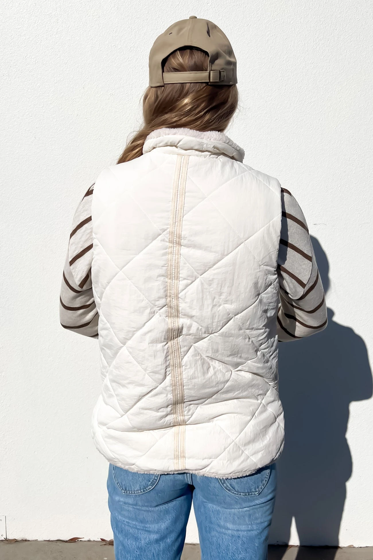 The Pamela Reversible Vest in white is a versatile addition to your wardrobe. Featuring a reversible design, it can be worn in multiple ways to suit your outfit. Its sleek black colour adds a touch of sophistication while keeping you warm and stylish. A must-have for any wardrobe.