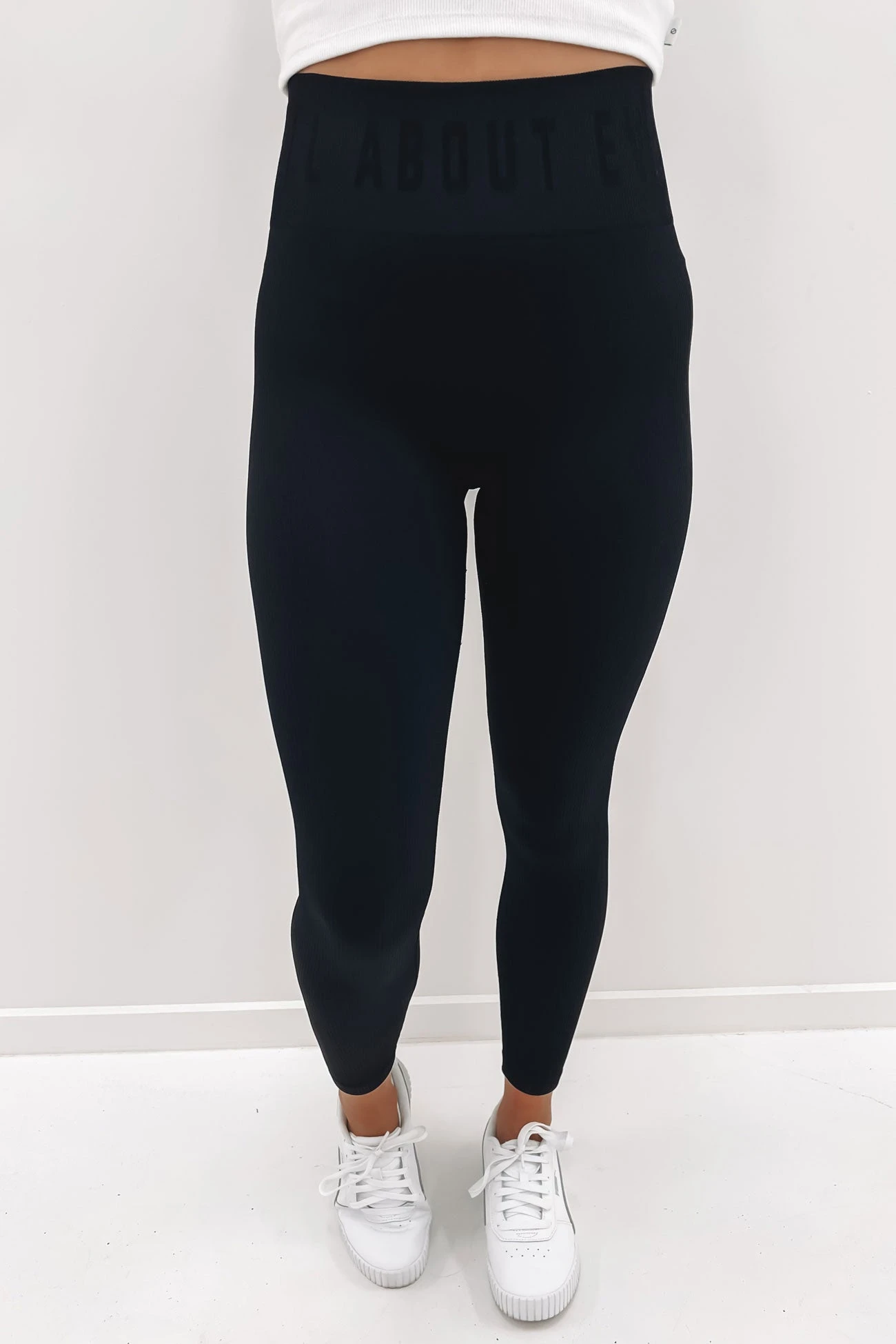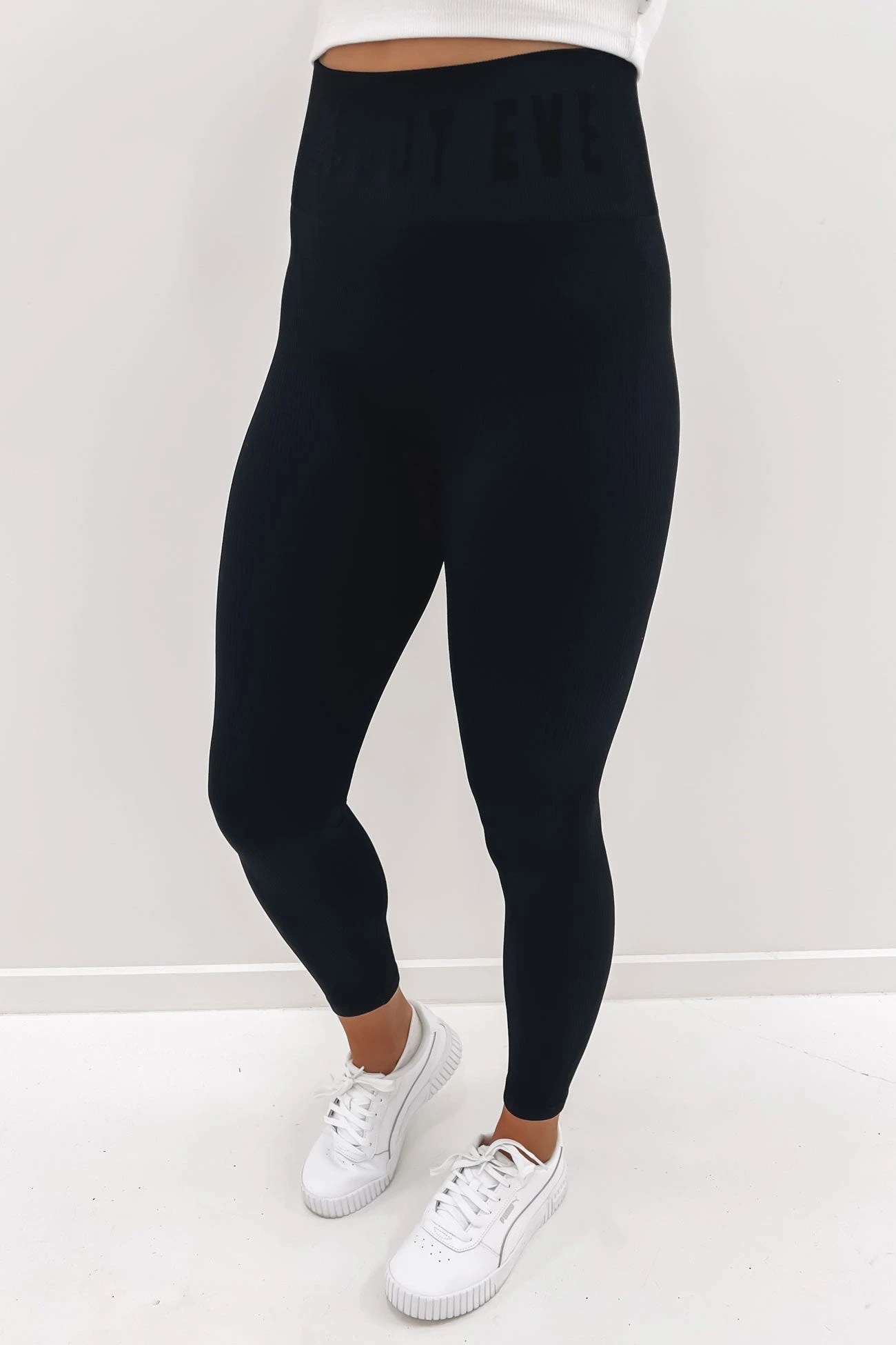 Remi Rib Legging feature a luxe rib fabrication and jacquard eve logo in a classic and comfortable sports fit.
