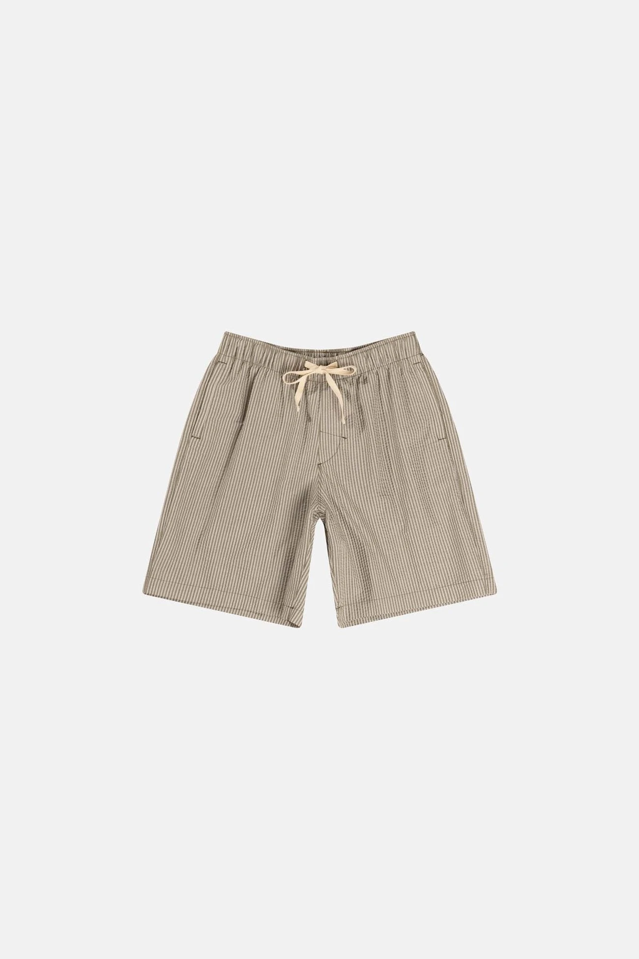 The Seersucker Stripe Jam Olive shorts are ideal for the summer wardrobe, featuring lightweight Cotton with a distinctively puckered texture. The yarn dye stripe fabric is perfect for warm weather, providing breathability and comfort, while the stylish stripe design adds a touch of sophistication. Perfect for any summer occasion, from casual outings to dressier events.