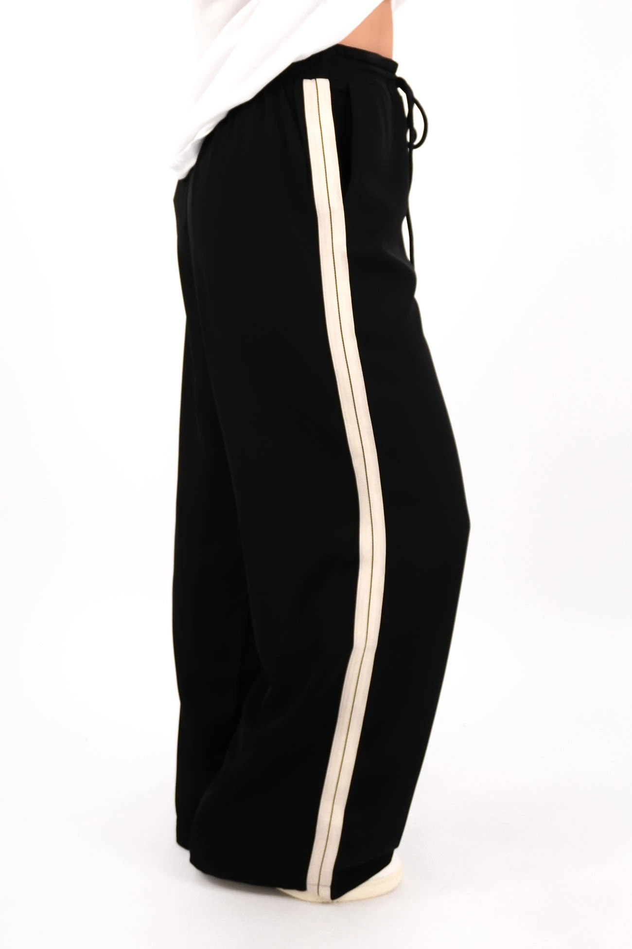Sporty meets street-ready. The Sascha Pant in Black features a high-waisted fit with an elasticated waistband and drawcord for comfort, side pockets for function, and sleek lines down the sides for a modern edge.