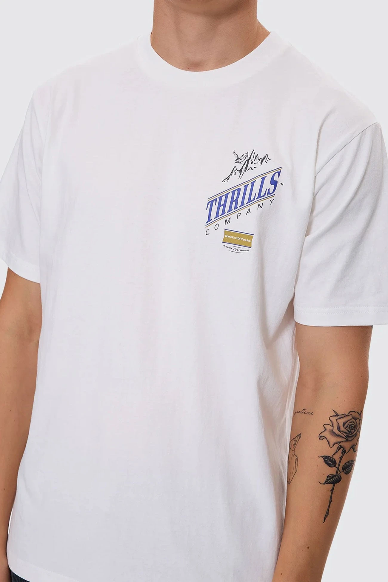 Your street style is a hit with our When It Hits Your Lips Merch Fit Tee in Dirty White. A fusion of vintage graphics and a loose, relaxed fit, this men’s clothing staple is made from premium cotton jersey for a soft, lightweight and durable feel you can wear all day. Featuring a classic crew neckline, a clean, minimalist base and distinctive Thrills typography for a retro-inspired finish.