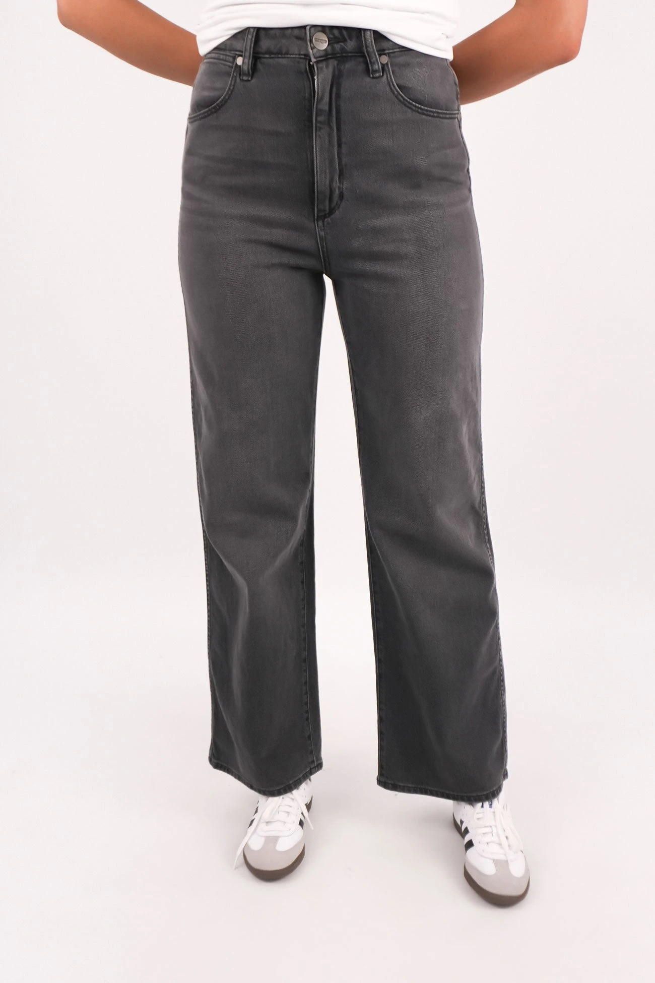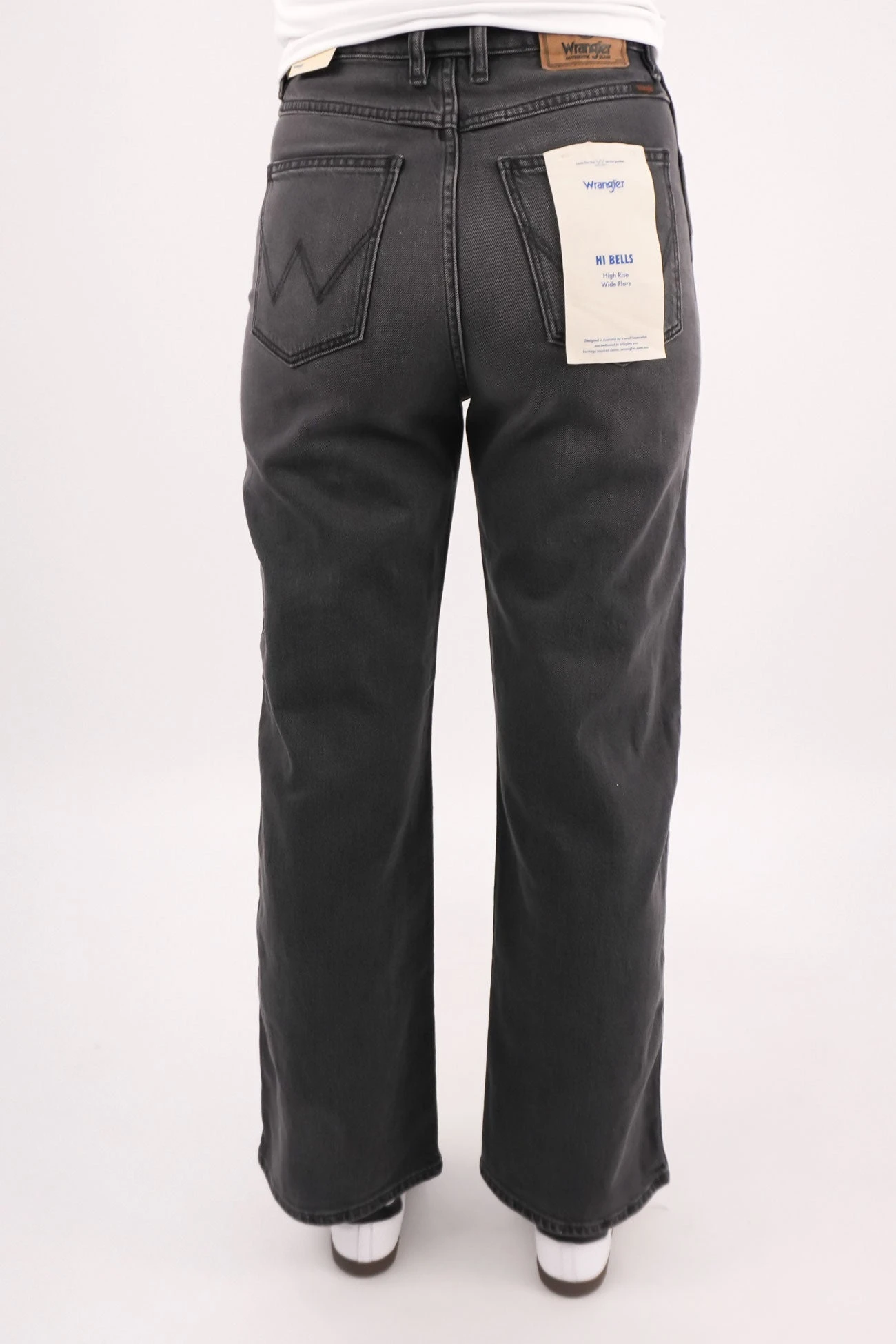 Wrangler’s Hi Bells jean is their heritage inspired wide-flare, featuring a dramatic full length to wear with any shoe. Sitting high and snug on the waist with an iconic wide-flare silhouette. Made in a worn in washed black wash, to give you the look of vintage denim with the comfort of hidden stretch.