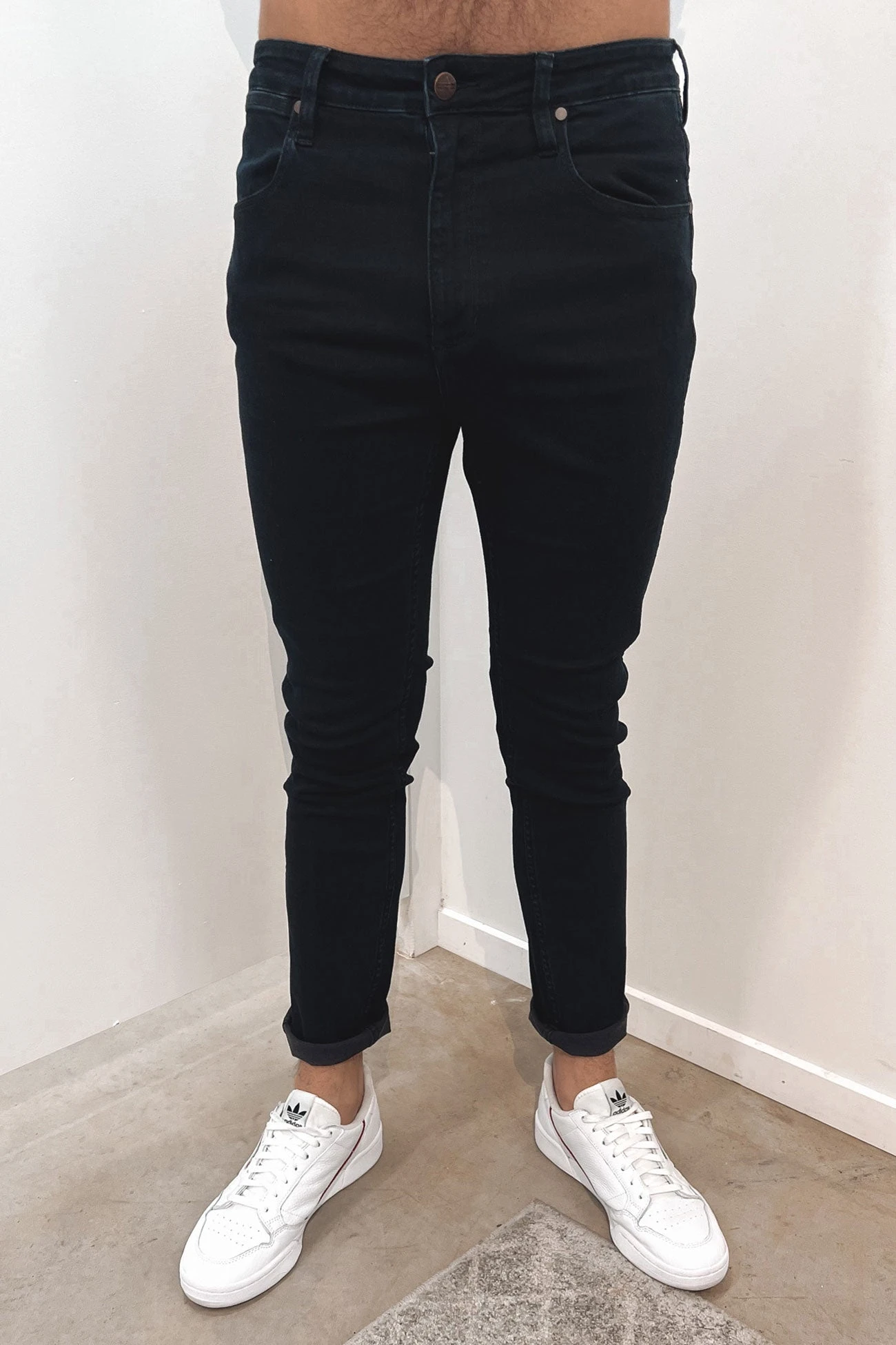 The Sid is Wrangler’s slim tapered jean, designed to sit just on your shoe with a clean silhouette through the leg. The Sid is ideal for those who still want a slim fit but need more room up top for comfort. Made in a black wash with subtle distressing, this jean is reliable and comfortable, constructed in a gutsy stretch denim.