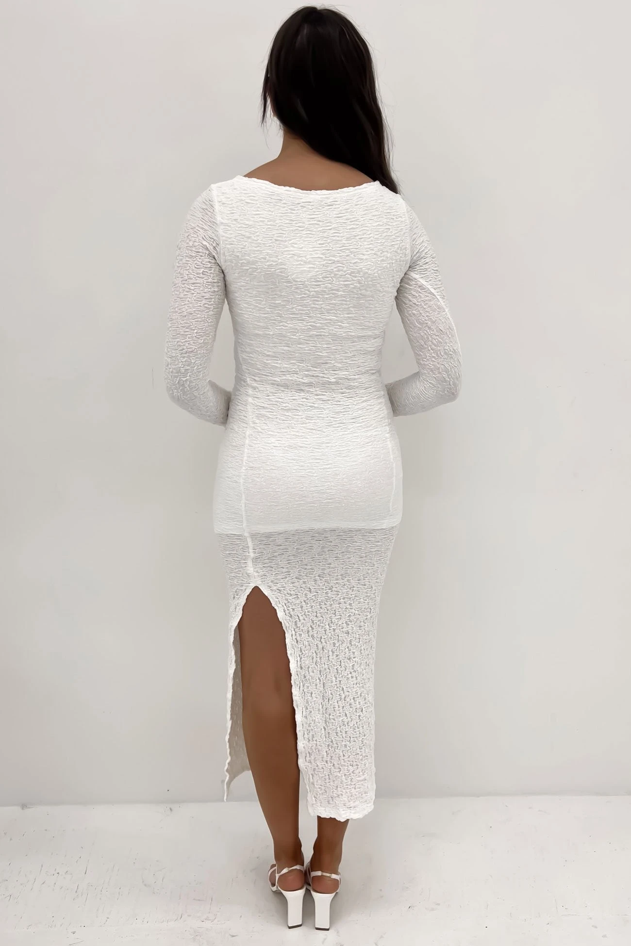 This is the perfect dress for any wardrobe. The Zion Midi Dress has a round neckline, long sleeves, and a bodycon fit for a flattering silhouette. It also features a subtle split at the side leg and a luxurious crepe fabrication for a touch of elegance.